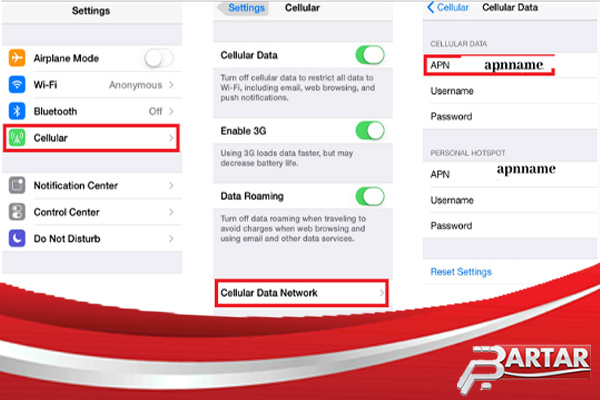 - Cellular Data Network را انتخاب کنید