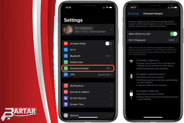 - حال آیفون اجازه اتصال دستگاههای دیگر را از طریق وایفای صادر میکند